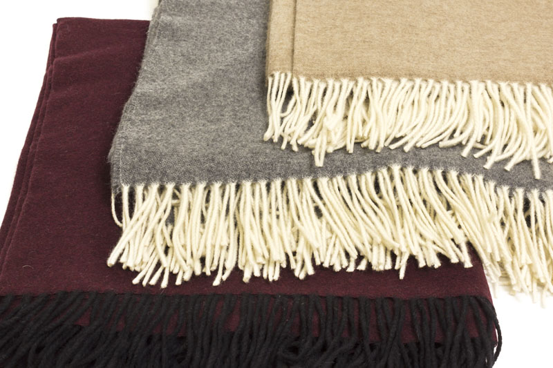 Plaid in lana disponibili tinta unita e scozzese; misura 130×160.